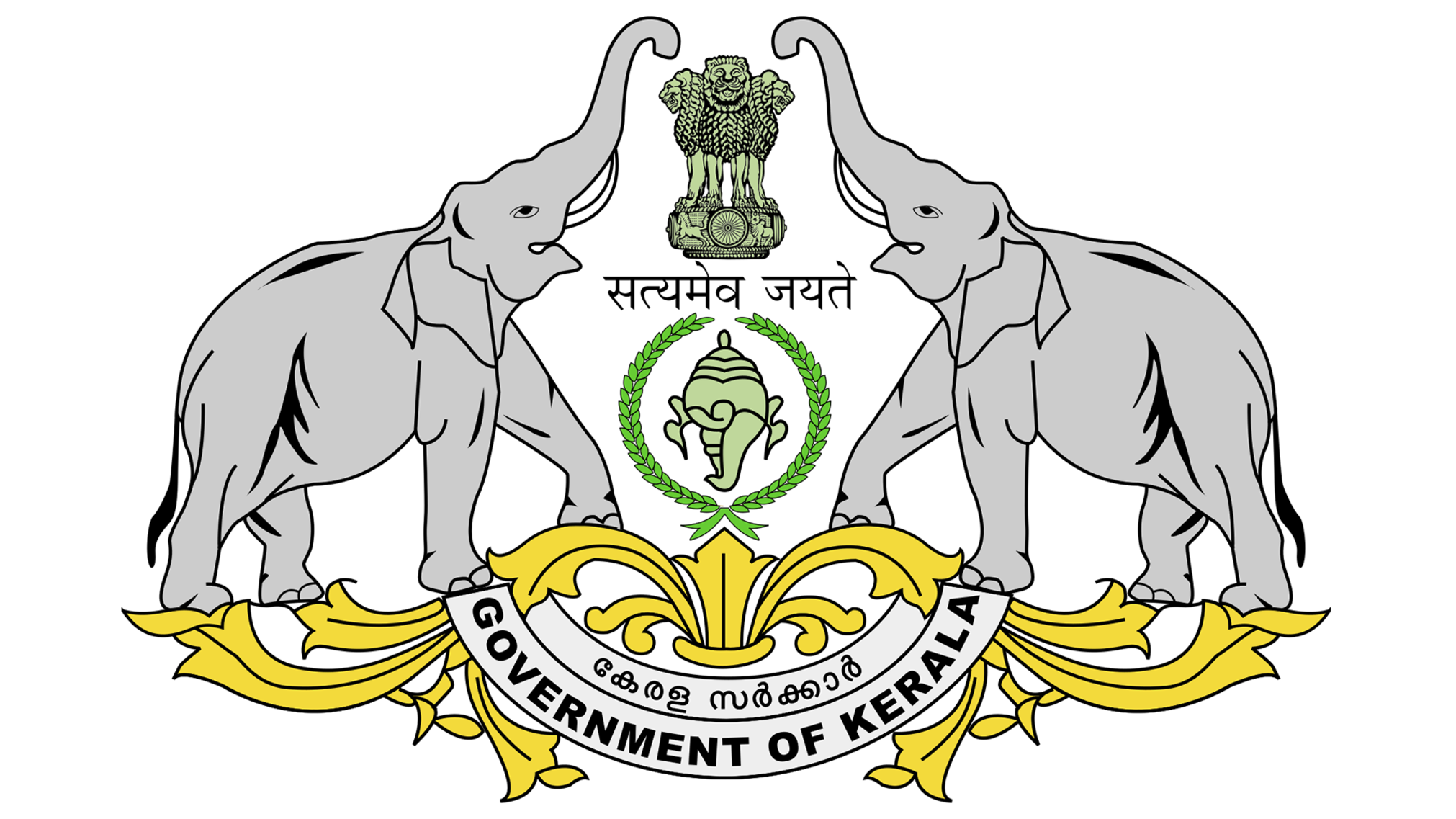 The Government of Kerala can be represented by a banner displaying the emblem of the state on a white field.